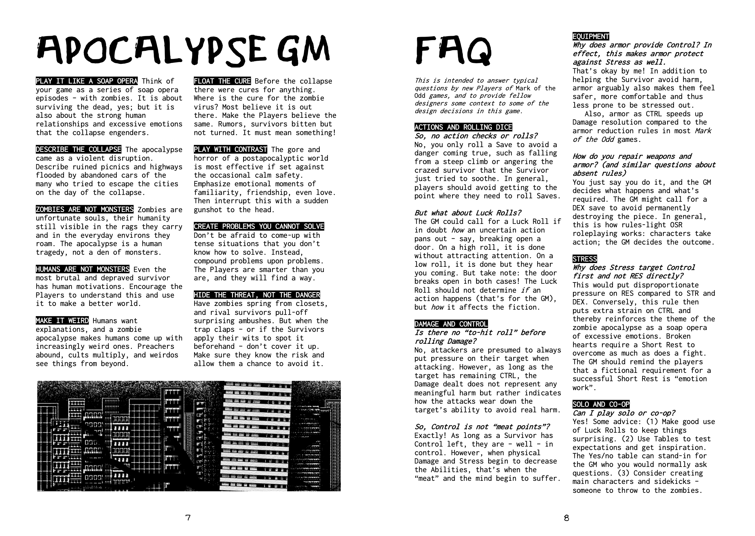 Tags | Horror, mark-of-the-odd, OSR, Post-apocalyptic, Tabletop role-playing game, Zombies |